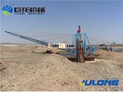 It is to fix mud(sand) dredging devices made up of bucket bridge,bucket chain and mud bucket on the center notching part of the bow or stern. When dredging,put the lower end of the bucket bridge into some depth of the water, making the mud(sand) bucket touch the soil(sand). Driven by the guide pulley on the upper end of the bucket bridge, the bucket chain operates continuously. It can dredge the mud(sand) by the mud bucket on the bucket chain. The dredged mud and sand are transported to the top of the bucket tower. After changed direction by guide pulley, the mud and sand in the bucket are put into mud well from the mud bucket under gravity of themselves. The mud and sand are discharged out of the ship board by the chute.